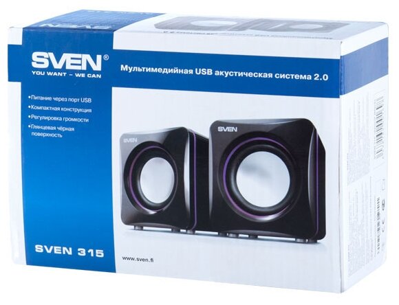 Колонки Sven 315, 2.0, черный [sv-0110315bk]