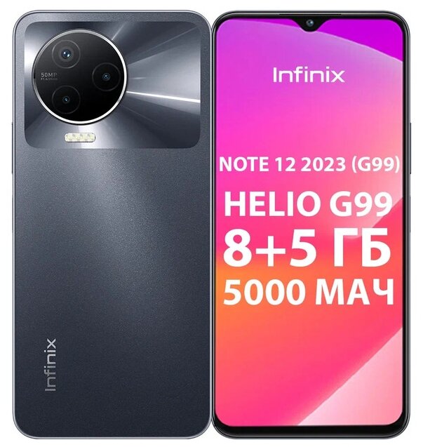 Смартфон Infinix NOTE 12 2023 8/128 ГБ, Dual nano SIM, графитовый серый