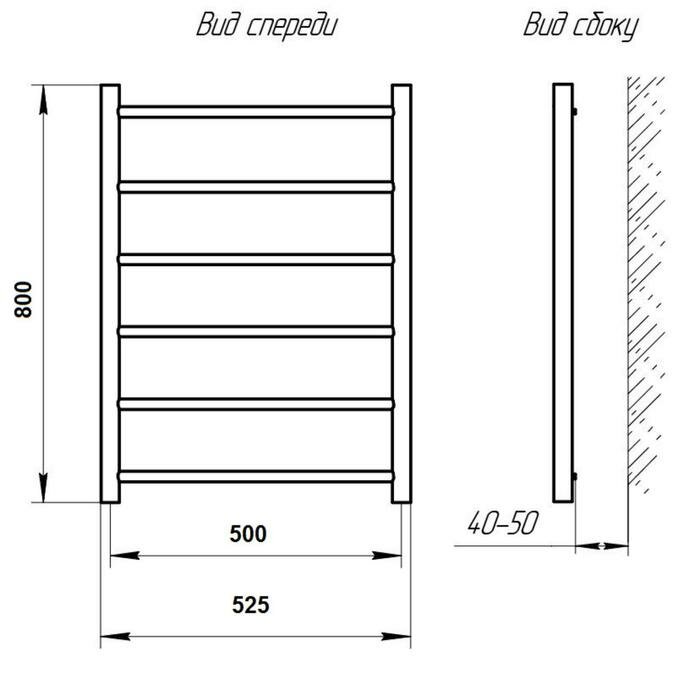 Полотенцесушитель ТЕРА Полотенцесушитель электрический ТЕРА "Мост", 500х800 мм, 6 перекладин