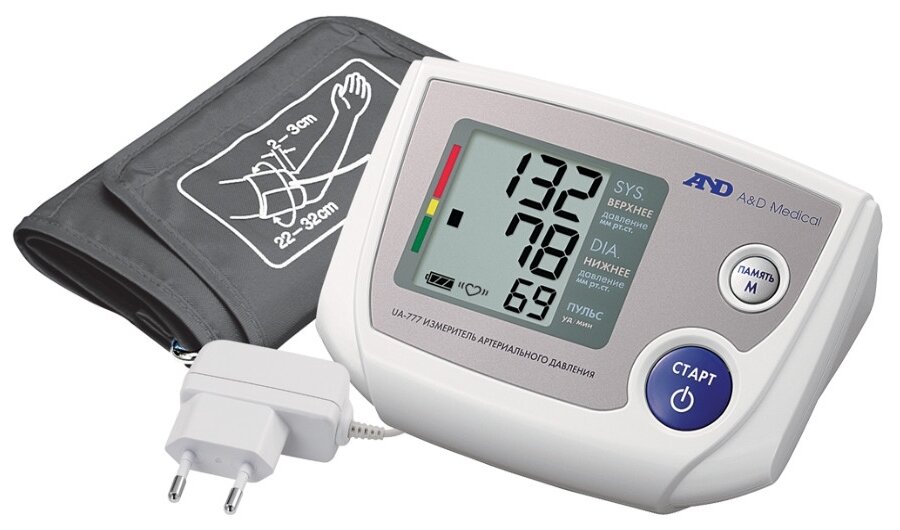 Тонометр AND UA-777 cо стандартной манжетой и сетевым адаптером