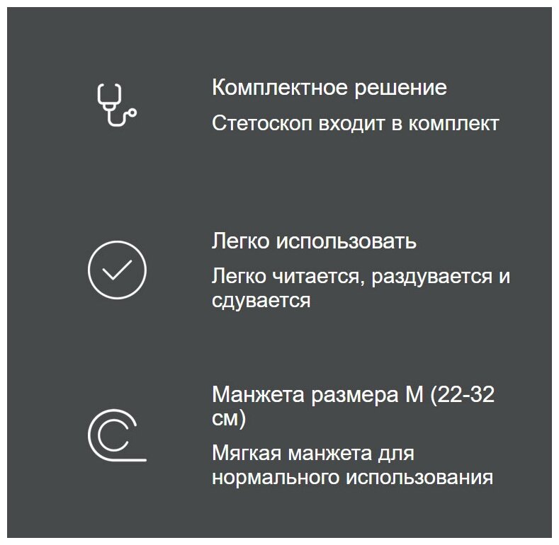 | Функции | измерение пульса / определение аритмии / расчет среднего давления / Bluetooth / индикация даты и времени / цветная шкала ВОЗ |