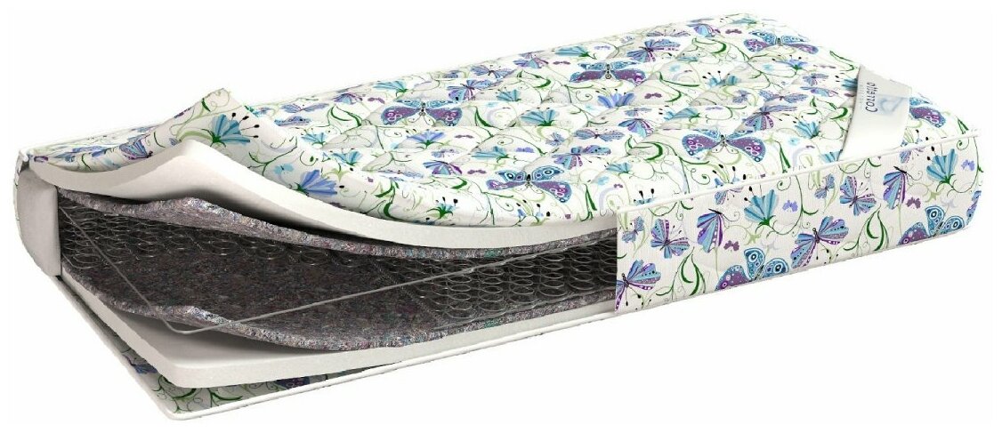 Лучшие цены. Детский матрас на пружинном блоке Боннель с пенополиуретаном и ватином. Детский матрас на классическом блоке Боннель. Надежность конструкции гарантирует долговечность этому матрасу. Поверх пружинного блока положен слой пенополиуретана и ватина с обеих сторон. Пенополиуретан в сочетании с ватином делает матрас средне-жестким, достаточно упругим, комфортным во время использования. Преимущества Чехол из стеганого поликоттона с детским рисунком приятный на ощупь и за ним легко ухаживать. Магазины в вашем городе.