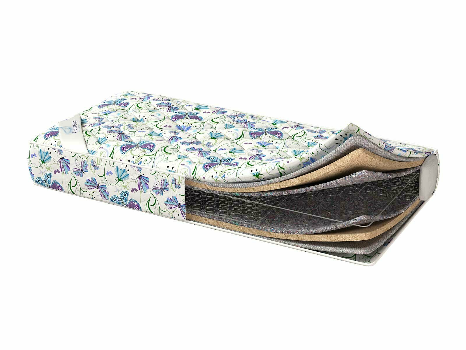 Лучшие цены. Детский матрас Corretto Noce di cocco обладает жёсткостью чуть выше среднего уровня. Он обеспечен ортопедическим натуральным наполнителем и качественным блоком пружин «Боннель». Вместе они создают умеренную поддержку для спины ребёнка и гарантируют комфортные условия для сна. Наполнители: Кокосовая койра симметрично установлена сразу с двух сторон матраса. Это прекрасный дышащий наполнитель природного происхождения. Магазины в вашем городе.