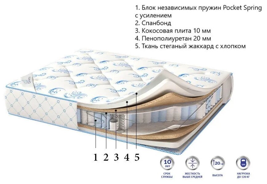 | Наполнитель | пенополиуретан, кокосовая койра, спанбонд |