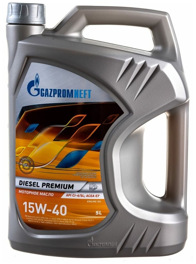 Лучшие цены. Масло моторное универсальное Gazpromneft Diesel Premium SAE 15W-40 API CI-4/SL7Всесезонное универсальное минеральное моторное масло, производится с использованием высококачественных базовых масел и сбалансированного пакета присадок. Благодаря использованию улучшенных базовых масел моторное масло обладает: увеличенным сроком службы, сниженным расходом масла на угар, совместимостью с системами снижения токсичности отработавших газов (SCR, EGR). Магазины в вашем городе.