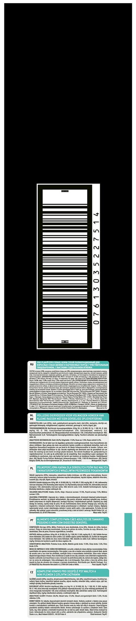 Корм Purina (Пурина) PRO PLAN для взрослых собак мелких и карликовых пород с чувствительным пищеварением, с высоким содержанием ягненка, 7кг
