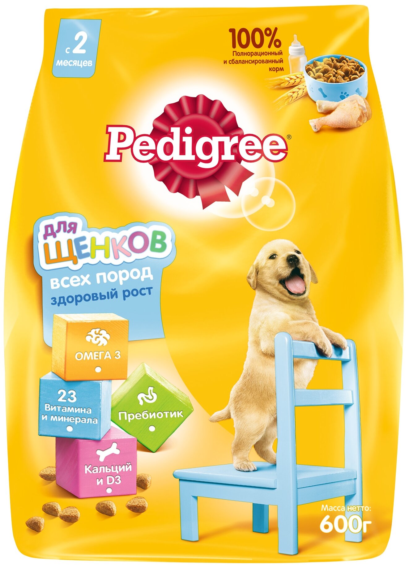 Корм сухой Pedigree полнорационный для щенков всех пород с 2 месяцев, с курицей, 600г