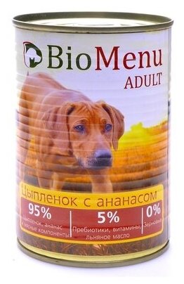 BioMenu ADULT Консервы для собак Цыпленок с Ананасами 95%-мясо 410г х 12 шт