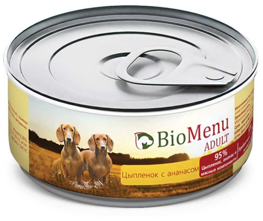 Biomenu Adult Консервы для Собак Цыпленок с Ананасами 95%-Мясо 24х100г