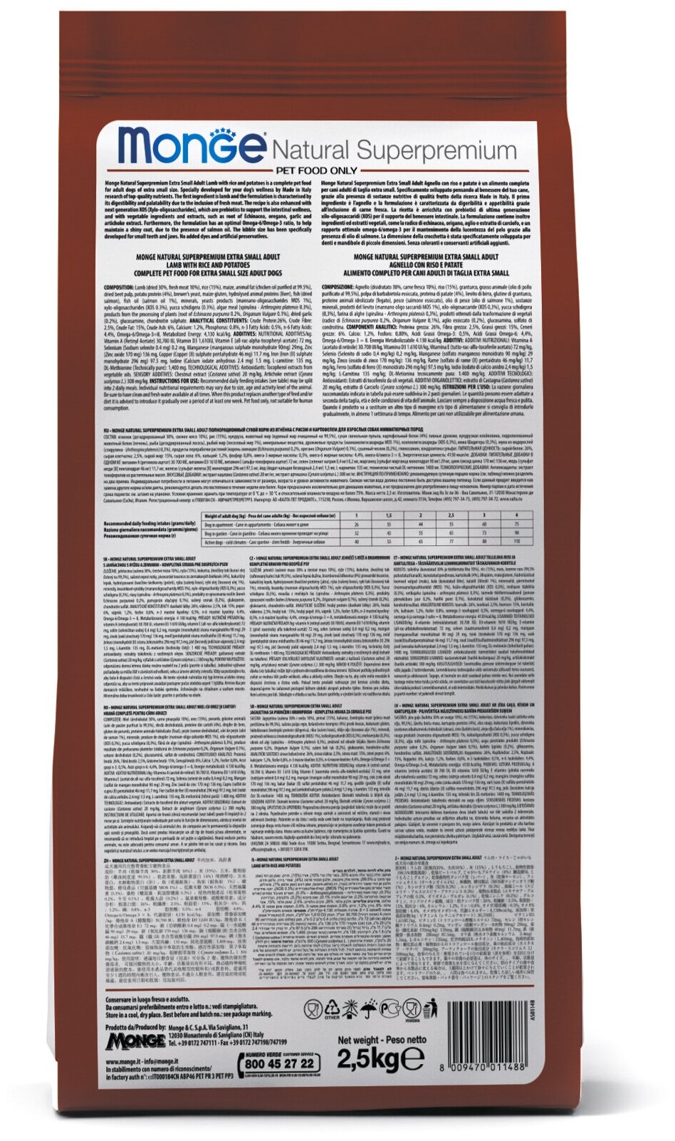 Сухой корм MONGE SPECIALITY DOG MINI PUPPY & JUNIOR LAMB для щенков маленьких пород с ягненком, рисом и картофелем (2,5 кг)