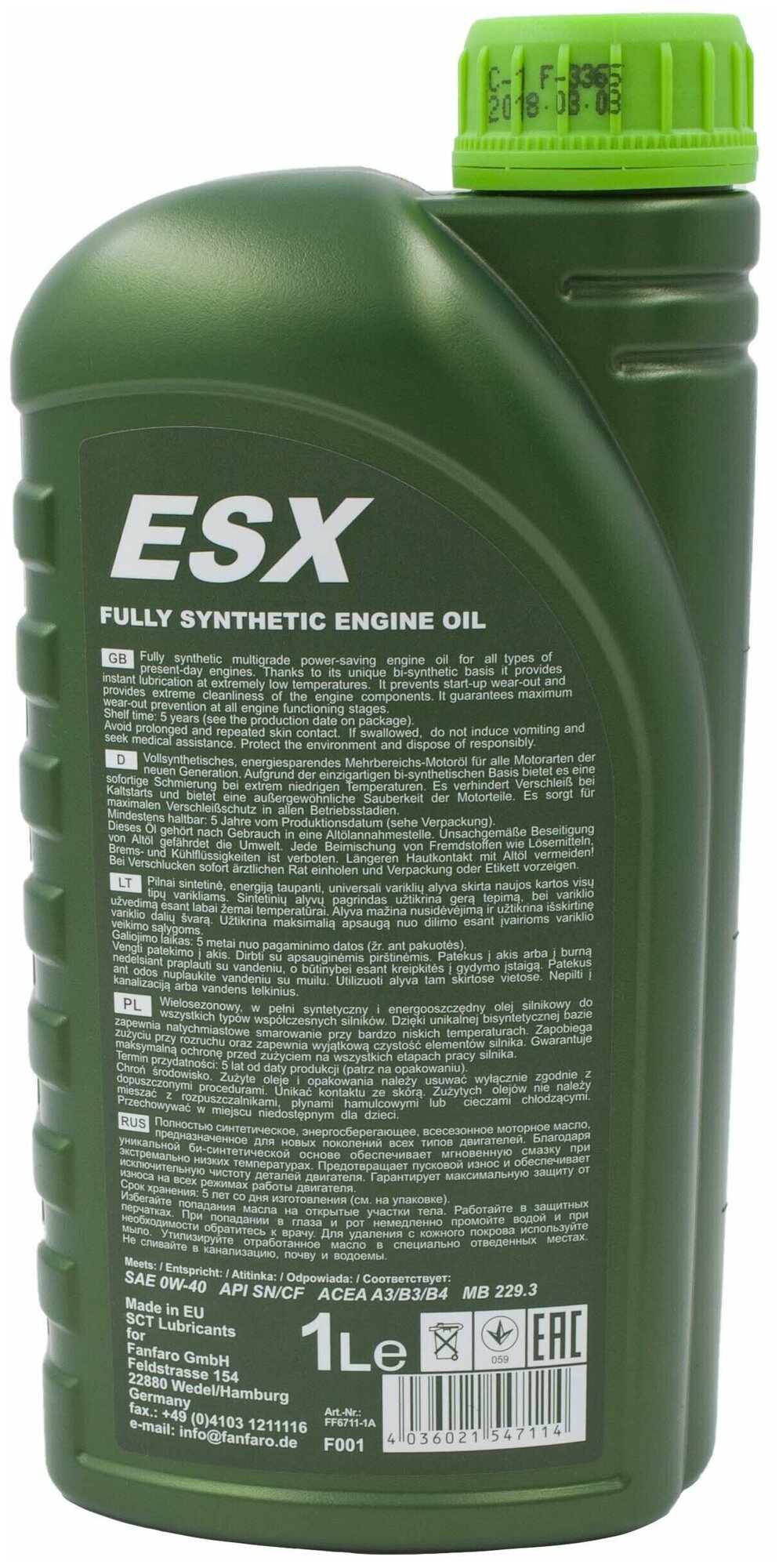 Моторное масло Синтетическое моторное масло FANFARO ESX 0w-40, 1 л FF6711-1