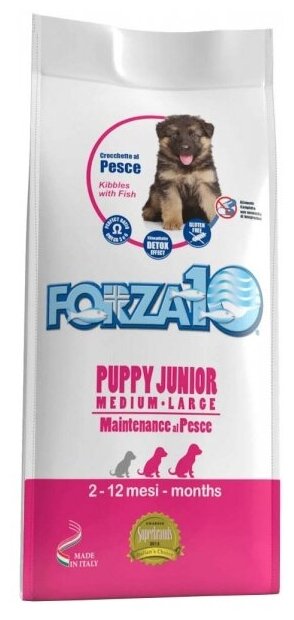 Лучшие цены. FORZA10 PUPPY JUNIOR MAINTENANCE M/L из рыбы — это специальный, полнорационный и сбалансированный корм супер-премиум класса для щенков средних и крупных пород, разработанный Научно-Исследовательским отделом компании SANYpet. Использование рыбы выловленной в открытом море, натуральные очищающие организм вещества (DETOX EFFECT), а также рис и сорго отборных сортов, легкоусваиваемые также для животных с целиакией, гарантирует каждодневное поддержание здоровья вашего щенка и собаки в период в период. Магазины в вашем городе.
