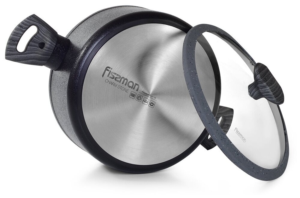 Лучшие цены. Инновационное направление в технологии производства антипригарных покрытий – использование цветов и текстур настоящего гранита, которое только на первый взгляд кажется декоративным. Серия посуды CHARM STONE с уникальным покрытием EcoStone собственной разработки FISSMAN, выполненная в благородном сером цвете с крупными белыми и черными пятнами, обладает высочайшей прочностью, термостойкостью и устойчивостью к истиранию и коррозии. Магазины в вашем городе.