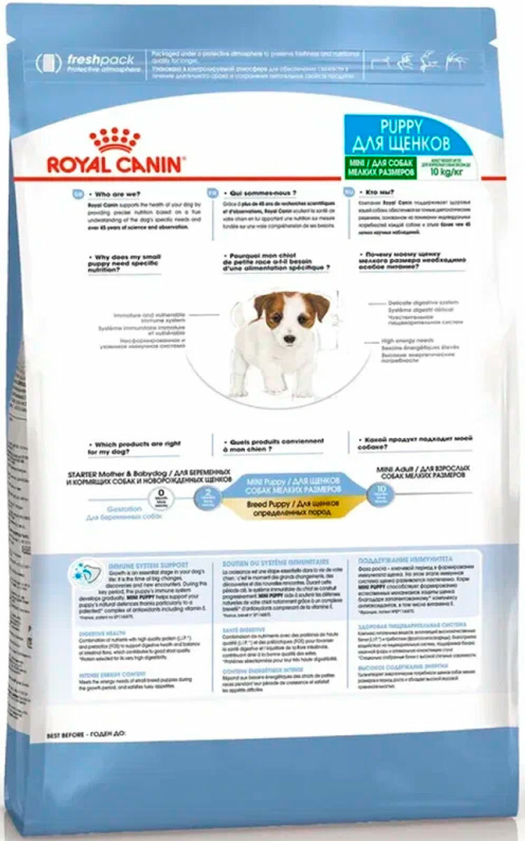 Корм сухой ROYAL CANIN MINI PUPPY 800 г корм для щенков мелких пород с 2 до 10 месяцев 4кг х 2 шт