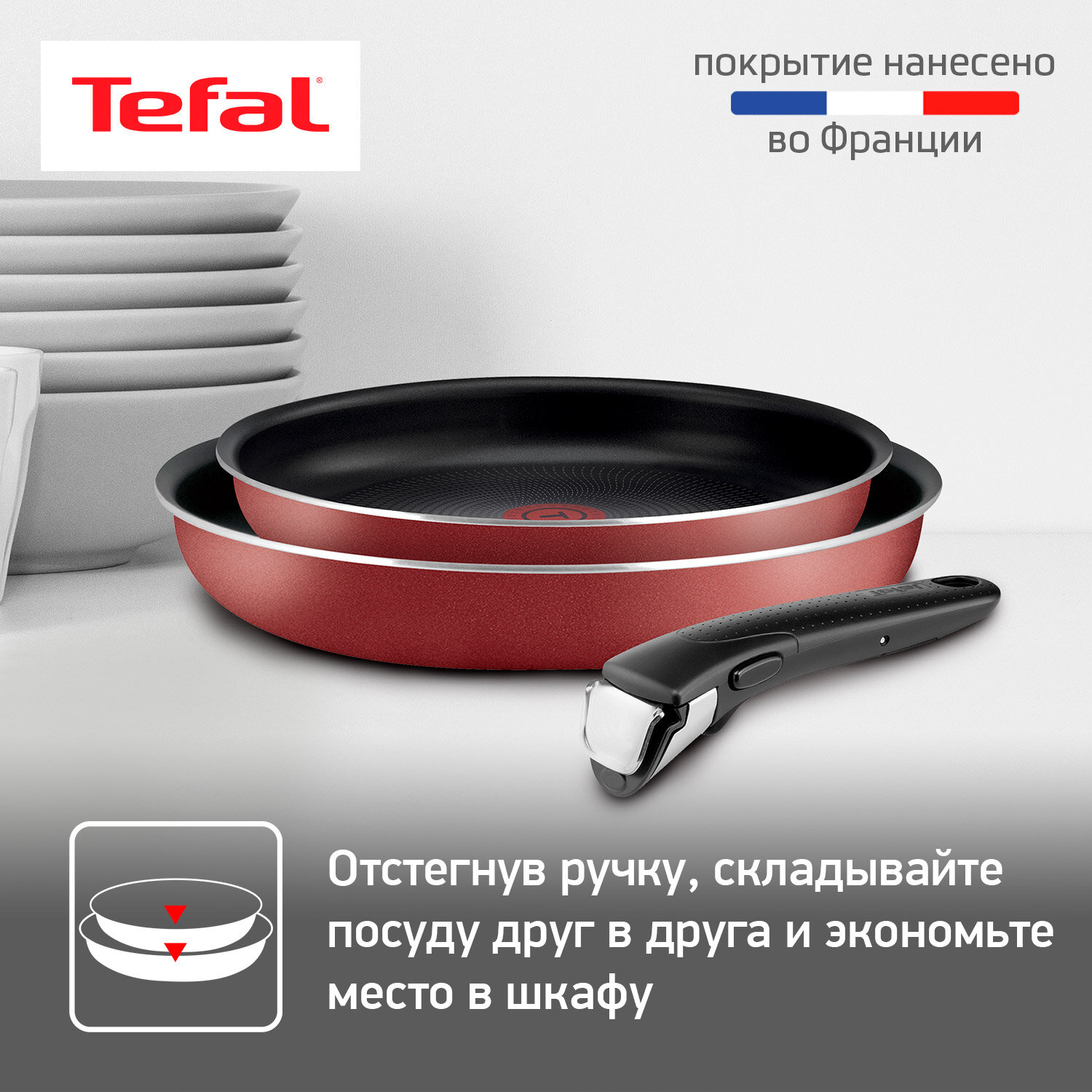 Набор посуды со съемной ручкой Tefal Ingenio RED 5 04175820, 24/28 см, с индикатором температуры и антипригарным покрытием, для газовых, электрических плит