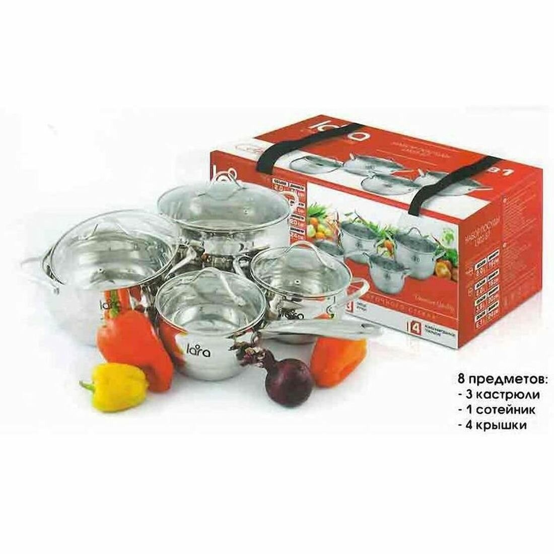 Набор кастрюль LARA LR02-87 APPLE 8 предметов, серебристый