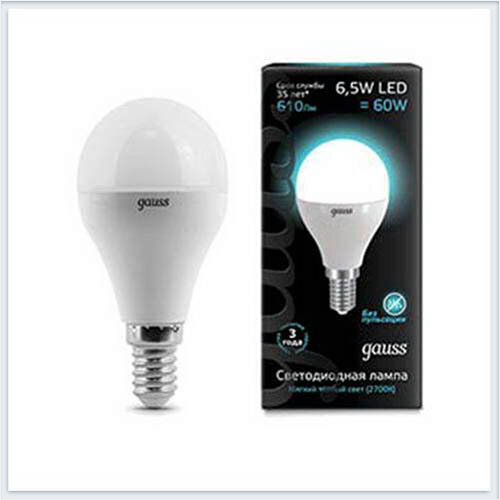 Лампочка Gauss Лампа светодиодная шар E14 6.5W 4100K Gauss 105101207