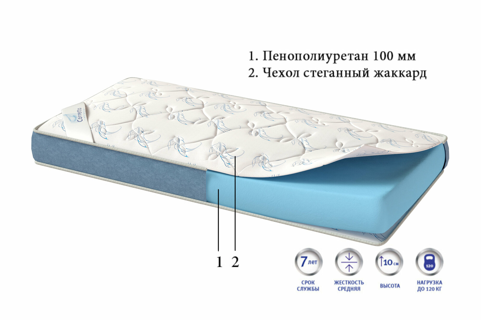 Лучшие цены. Матрас Corretto Standart 2 станет отличным выбором, если вы ищите компактное спальное место. Модель разработана таким образом, что с одной стороны, обеспечивает комфорт, а с другой, экономит пространство. После сна изделие можно удобно свернуть в рулон и спрятать в шкаф. Толщина матраса составляет 10 см. Внутри модели расположился гибкий и эластичный наполнитель, который не деформируется и не ломается при скручивании. Основным несущим блоком здесь выступает пенополиуретановый слой. Магазины в вашем городе.