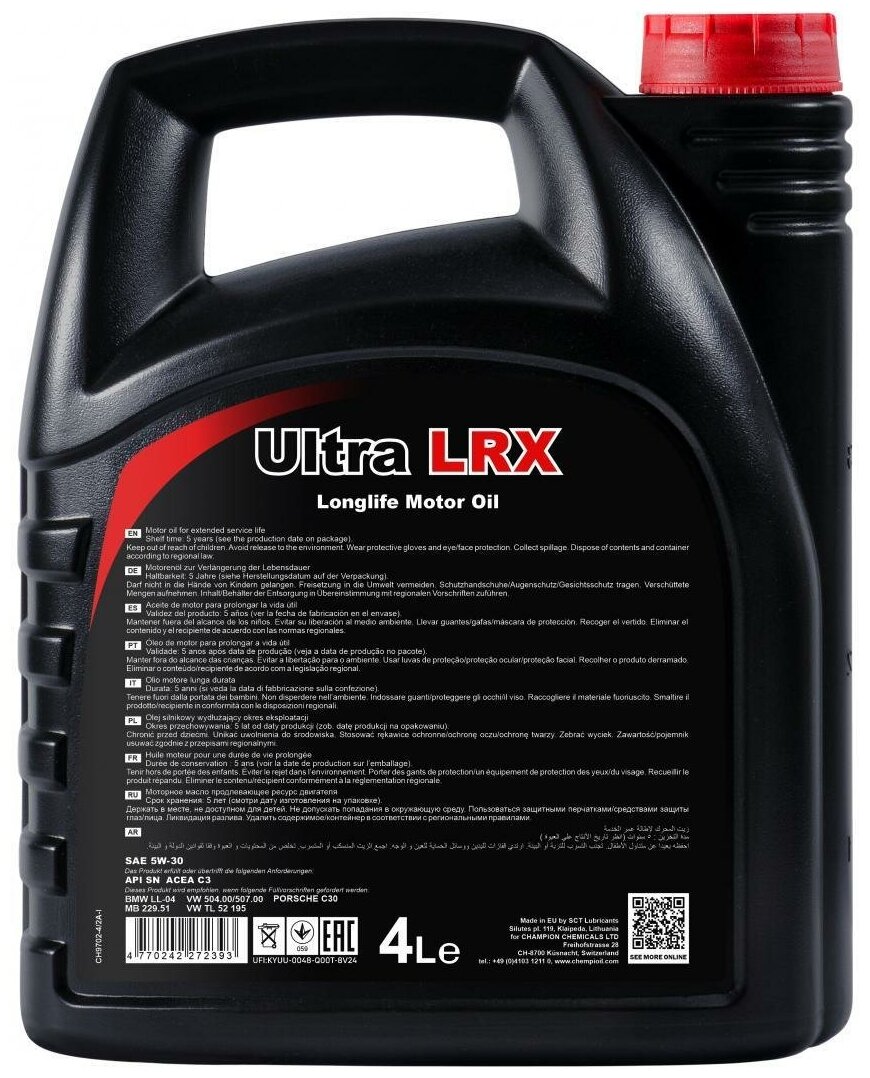 Масло CHEMPIOIL Ultra LRX SAE 5W-30 синт. (5л.) API SN/CF; ACEA C3; VW 504.00/507.00; MB 229.51; BMW LL-04