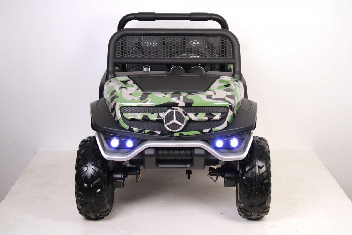 Лучшие цены. Полноприводный электромобиль в ярким экстерьером приведет в восторг маленького автолюбителя. В Mercedes-Benz два полноценных посадочных места - кожаные мягкие кресла оснащены индивидуальными ремнями безопасности. Все элементы управления находятся перед водителем. Двигатель Unimog Concept P555BP запускается кнопкой, в движение машинку приводит нажатие педали газа. На приборной панели расположена автомагнитола, рычаг АКП (две скорости вперед, одна назад), клавиша переключения 2WD/4WD. Магазины в вашем городе.