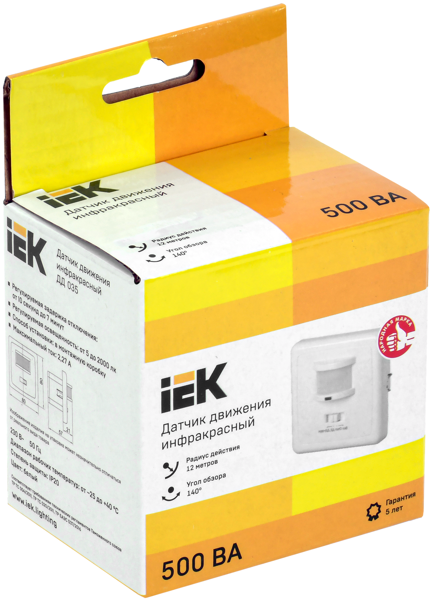 IEK Детектор движ. ДД 035 500Вт угол обз. 140град. дальн. 12м IP20 бел. ИЭК LDD12-035-500-001