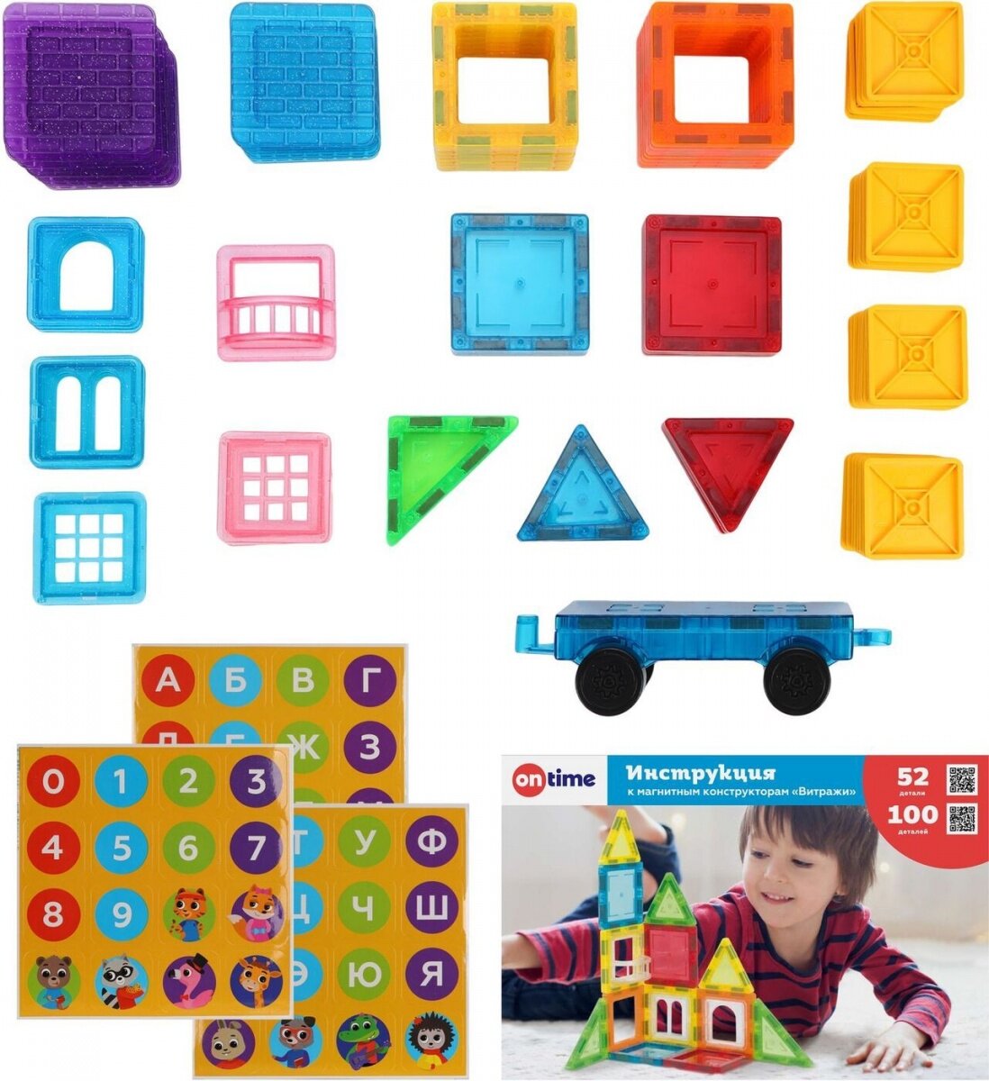 Лучшие цены. Магнитный конструктор «Витражи» от торговой марки ON TIME поможет ребенку научиться собирать простейшие и плоские фигуры. Он будет интересен как малышам, так и детишкам постарше. Яркие пластмассовые детали разных цветов легко соединяются друг с другом, их удобно и легко держать детской ручкой. Занимаясь конструированием, ребенок будет развивать воображение и пространственное мышление, мелкую моторику рук и способность классифицировать объекты по форме и цвету. Магазины в вашем городе.