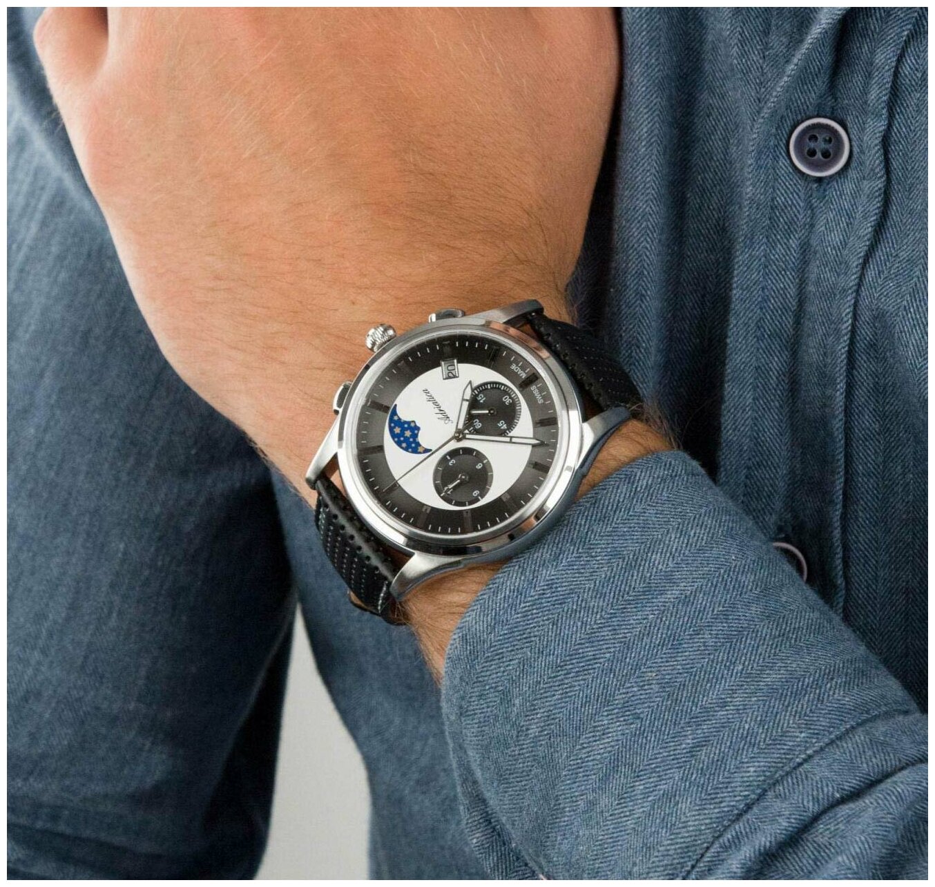 Лучшие цены. Швейцарские мужские часы. Коллекция Passion. Эти функциональные часы со строгим дизайном станут отличным аксессуаром для мужчин, которые предпочитают элегантность во всем и всегда. Тип механизма: кварцевый. Калибр: ETA G10. Корпус: сталь. Циферблат: черный, серебристый. Браслет: кожаный ремешок. Водозащита: 50WR. Стекло: сапфировое. Календарь: число, фаза Луны. Габаритные размеры: D 46мм, толщина 12мм, вес 90г. Магазины в вашем городе.