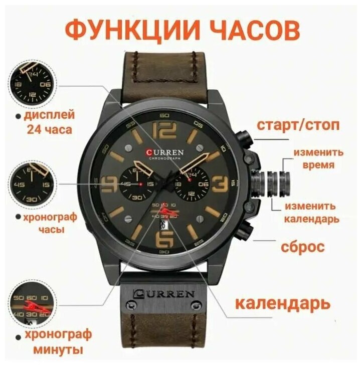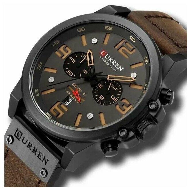 Лучшие цены. Описание Новая модель повседневных наручных мужских часов. Наши брутальные стильные часы совмещают в себе: - Японский кварцевый механизм - Циферблат Hardlex Crystal диаметром 45 мм - Новейший прочный ремешок из натуральной кожи - Хронограф - 3 дополнительных функционирующих циферблата + календарь - Водонепроницаемость 3 атм - Корпус из гипоаллергенного сплава Кварцевые современные часы прекрасно и дорого смотрятся на брутальной мужской руке. Идеальный выбор и для подарка и для себя любимого. Магазины в вашем городе.