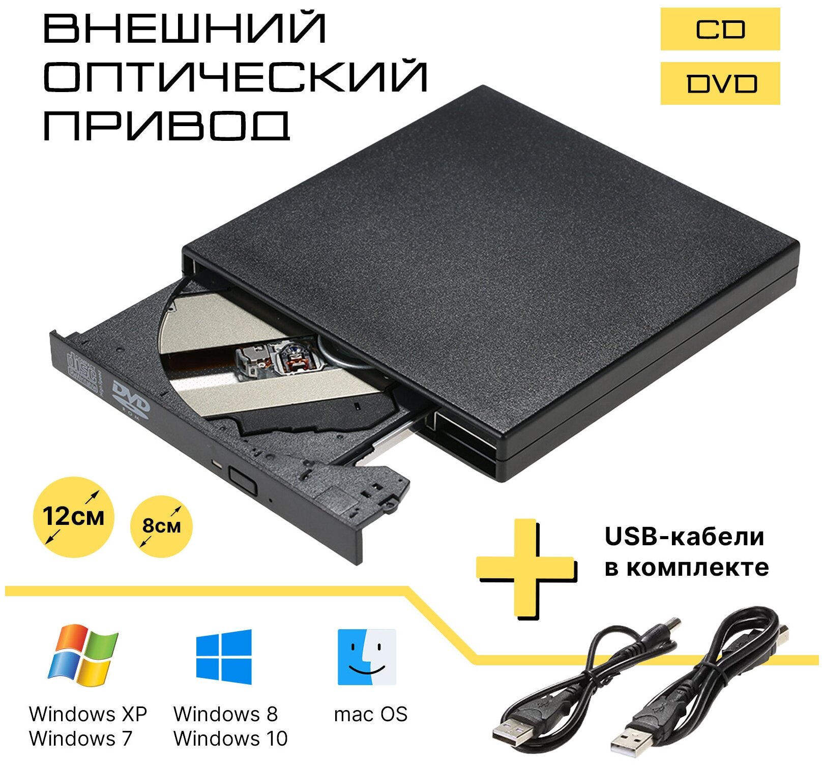 Лучшие цены. Для всех, пользующихся стационарным или мобильным компьютером, имеет значение наличия внешнего дисковода. Геймеры, любители старых кассетных фильмов, программисты и многие другие по достоинству оценят внешний DVD привод. Дисковод внешний USB 2.0 имеет размер: 13,8 см * 13,3 см * 1.8 см. Корпус DVD привода выполнен в черном цвете. Внешний DVD привод совместим в работе в ОС: Windows XP/2003/7/8/Vista/Linux/Mac 10 OS. Стандарт диска в дисковод: CD-RW, DVD. Магазины в вашем городе.