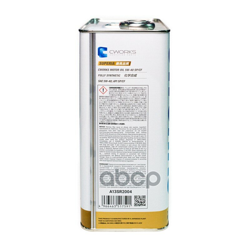 Моторное масло CWORKS SUPERIA MOTOR OIL 5W-40 SP/CF, 4L A13SR2004