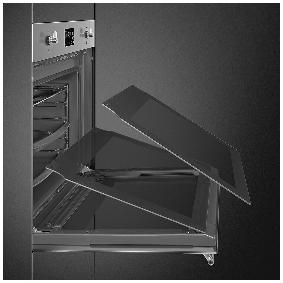 Духовые шкафы Встраиваемая электрическая духовка Smeg Classica, Многофункциональный духовой шкаф с пиролизом, 60 см, 10 функций, нержавеющая сталь