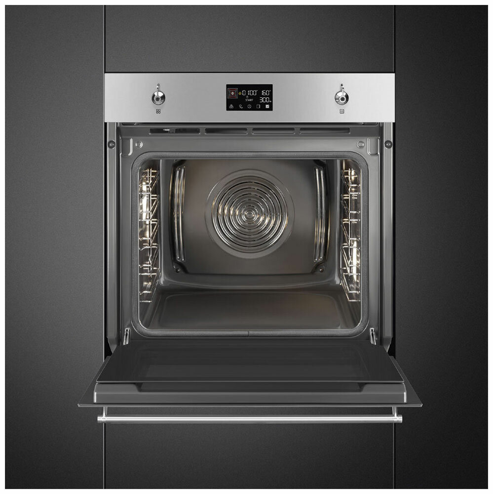Встраиваемая электрическая духовка Smeg Classica, Многофункциональный духовой шкаф с пиролизом, 60 см, 10 функций, нержавеющая сталь
