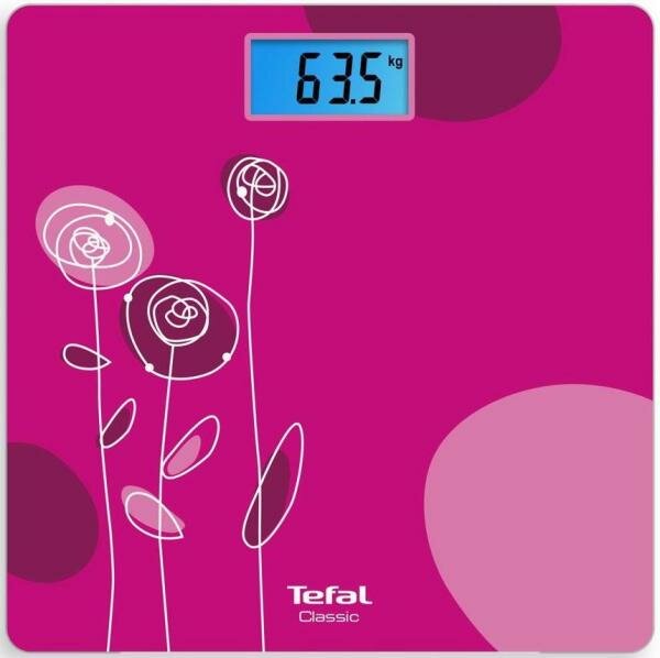Лучшие цены. Наименование: Весы напольные; Тип: электронные; Максимальная нагрузка: 160 кг; Градация: 100 г; Погрешность: 100 г; Количество пользователей: не ограниченно; ЖК-дисплей: да; Измерение: общей массы; Автоматическое включение: да; Автоматическое выключение: да; Цвет корпуса: розовый, рисунок; Материал платформы: стекло; Прочие особенности и свойства: C простыми и удобными напольными весами Classic от Tefal взвешиваться каждый день или время от времени – легко. Магазины в вашем городе.