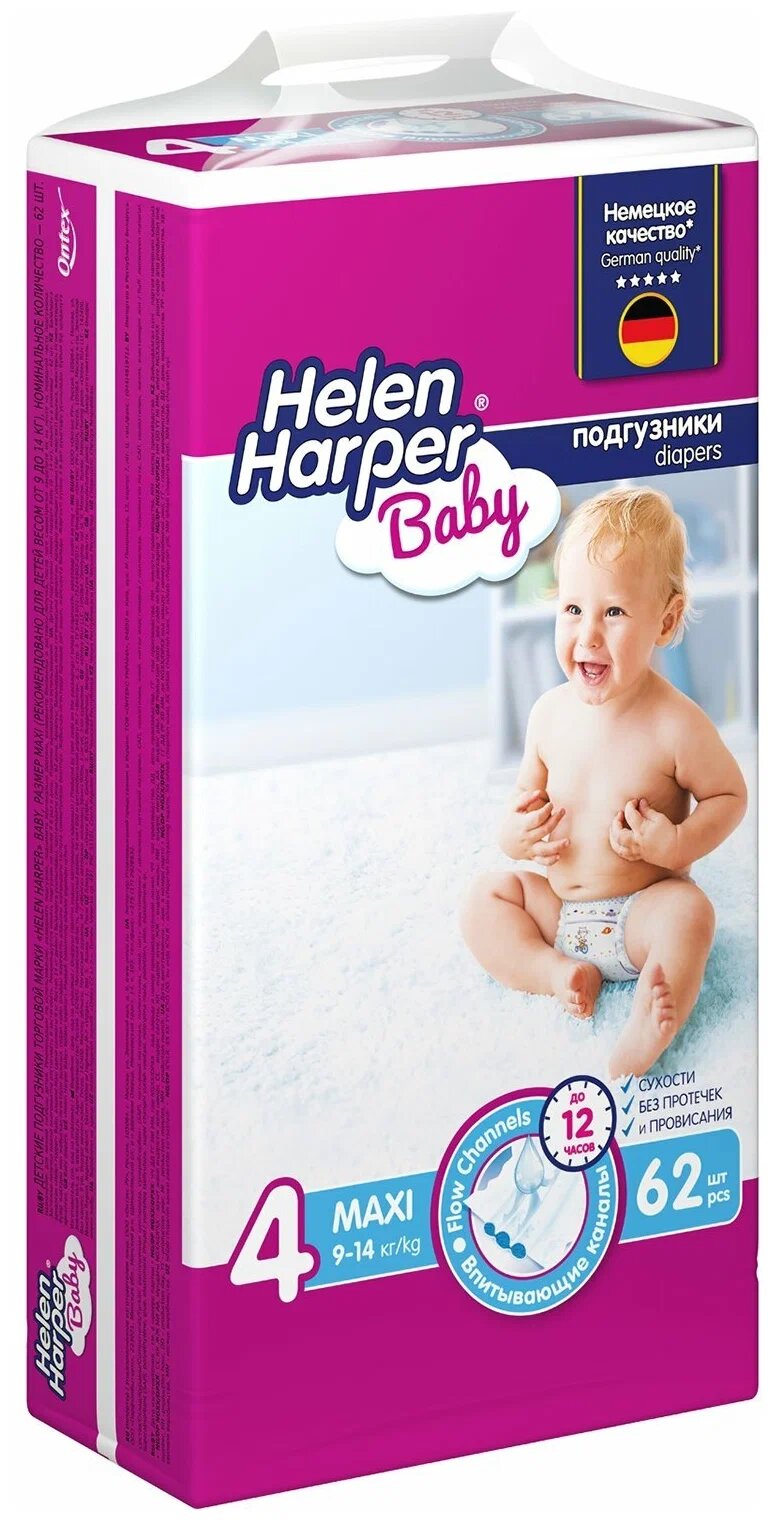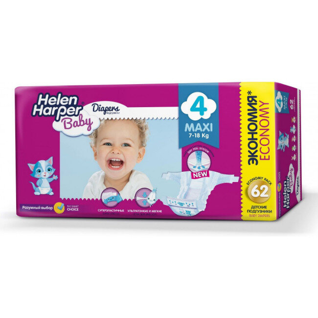 Helen Harper подгузники Baby 4 (9-14 кг), 62 шт.