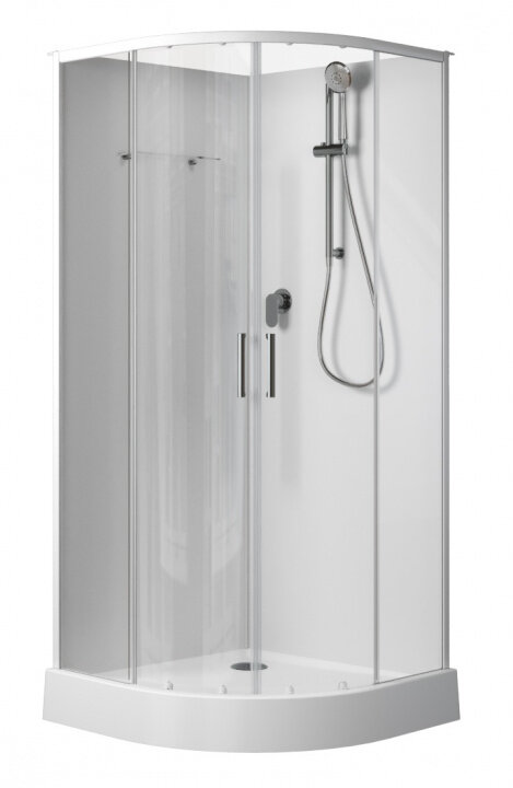 Лучшие цены. Артикул: 00267252 Тип: кабина Ширина, см: 90 Глубина, см: 90 Высота, см: 202 Область применения: бытовая Стилистика дизайна: современный стиль Страна: Россия Форма: четверть круга Ориентация: универсальная Материал профиля: алюминий Цвет профиля: белый Конструкция дверей: раздвижная Исполнение полотна двери: прозрачное Толщина полотна двери, мм: 5 Материал полотна двери: закаленное стекло Вид поддона: низкий Материал поддона: акрил Расположение: угловое Цвет задней стенки: белый Наличие крыши: открытая, без. Магазины в вашем городе.