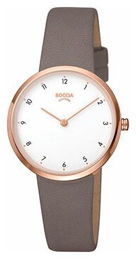 Лучшие цены. Женские кварцевые часы. Центральные часовая и минутная стрелки. Белый циферблат. Арабская индикация времени. Круглый корпус выполнен из гипоаллергенного титана с PVD покрытием цвета розового золота. Диаметр корпуса составляет 32 мм, толщина 6,5 мм. Серый кожаный ремешок, стандартная застежка. Прочное минеральное стекло устойчивое к мелким механическим повреждениям. Водостойкость WR 30 (брызги). Магазины в вашем городе.