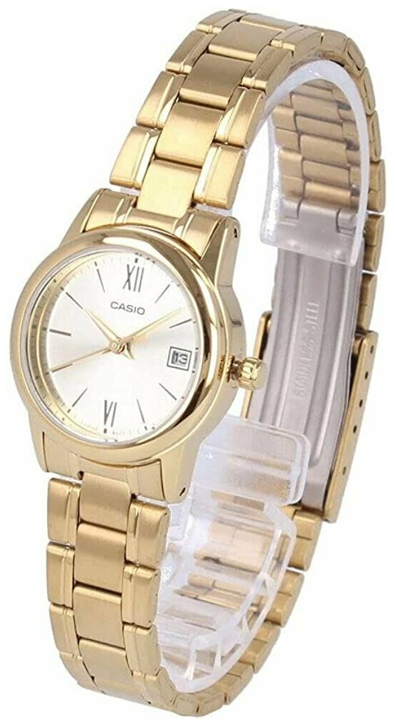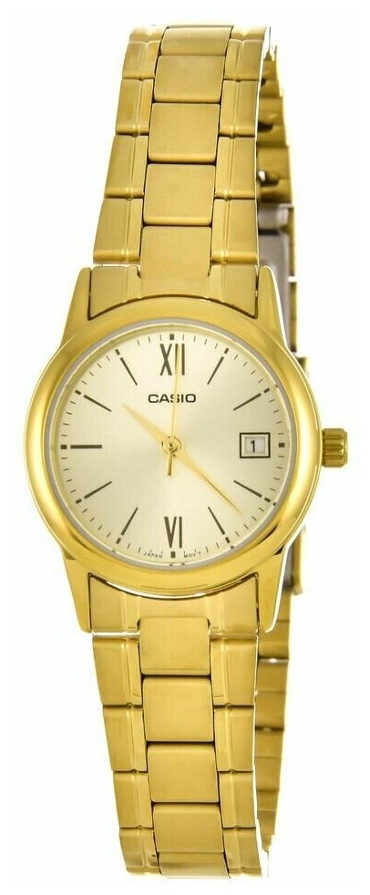Лучшие цены. Общие характеристики часы Casio LTP-V002G-9B3 Женские часы с календарём (окошко даты) в классическом, круглом корпусе, выполненном из стального сплава, с центральной секундной стрелкой. Полное IP покрытие** обеспечивает надежную защиту корпуса часов от коррозии и случайных царапин. Тип: кварцевые, женские. Способ отображения времени: аналоговый (стрелки), формат 12 часов, секундная стрелка центральная. Цифры: арабские. Источник энергии: от батарейки. Конструкция Водонепроницаемые: есть, WR. Магазины в вашем городе.