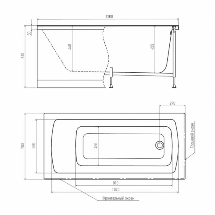 Лучшие цены. Размеры: 1200 x 700 x 610 мм Глубина: 455 мм Объем: 140 л Диаметр сливного отверстия: 50 мм Цвет: белый Материал: сантехнический акрил Расположение перелива: стандартное. Магазины в вашем городе.