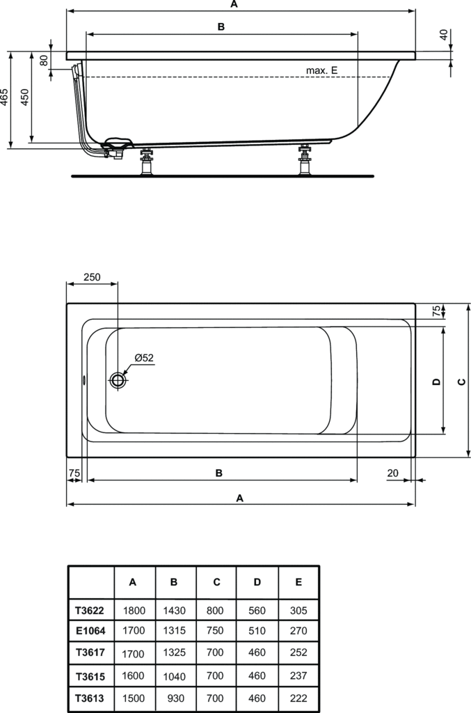 Лучшие цены. CONNECT AIR Встраиваемая акриловая прямоугольная ванна 170X75 см, диаметр отверстия слива 52 мм, без системы слива-перелива Коментарий: В случае пристенной установки(когда одна фронтальная сторона и боковые стороны ванны закрыты гипсокартоном и керамической плиткой) необходимо заказывать: - крепежный комплект К727467(металлические поперечины профиля для настенного монтажа и опоры для бортика ванны(2шт), металлические настенные скобки(3шт). Другие монтажные огпции(в случае установки в подиум). Магазины в вашем городе.