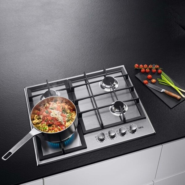 Лучшие цены. Встраиваемая газовая панель AEG HGR6436SM – современное устройство, простое, надёжное и безопасное в использовании. В случае угасания пламени предохранители быстро прервут подачу топлива и предотвратят утечку. Эта модель оснащена четырьмя конфорками. Вперёд вынесены самая малая (1000 Вт) и наиболее мощная (4000 Вт). Первая пригодится для варки кофе в турке или быстрого разогревания одной-двух порций блюда в ковшике – вам не придётся тянуться, чтобы следить за ними. Магазины в вашем городе.