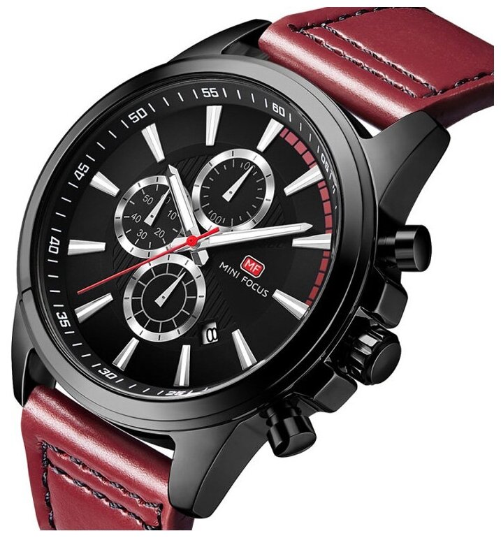Лучшие цены. Классический дизайн Mini Focus MF0129G привлекает своей простотой и изысканностью. Достаточно яркое сочетание черного корпуса и красного ремешка не смотрится слишком броско или вычурно, наоборот, красный цвет придает аксессуару оригинальности и статуса. Модель смотрится массивно и брутально на мужском запястье и хорошо сочетается с деловым и повседневным стилем. Особенности часов Mini Focus MF0129G (S/B/B) Крепкий корпус Высокоточный кварцевый механизм находится под защитой прочного корпуса из сплава. Магазины в вашем городе.