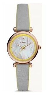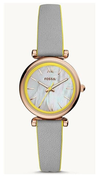 Лучшие цены. Женские кварцевые часы. Центральные часовая, минутная и секундная стрелки. Перламутровый циферблат. Круглый корпус выполнен из полированной нержавеющей стали с IP покрытием цвета розового золота. Диаметр корпуса составляет 28 мм, толщина 7 мм. Серый кожаный ремешок шириной 12 мм, классическая застежка. Прочное минеральное стекло устойчивое к мелким механическим повреждениям. Водостойкость WR 30 (брызги). Магазины в вашем городе.