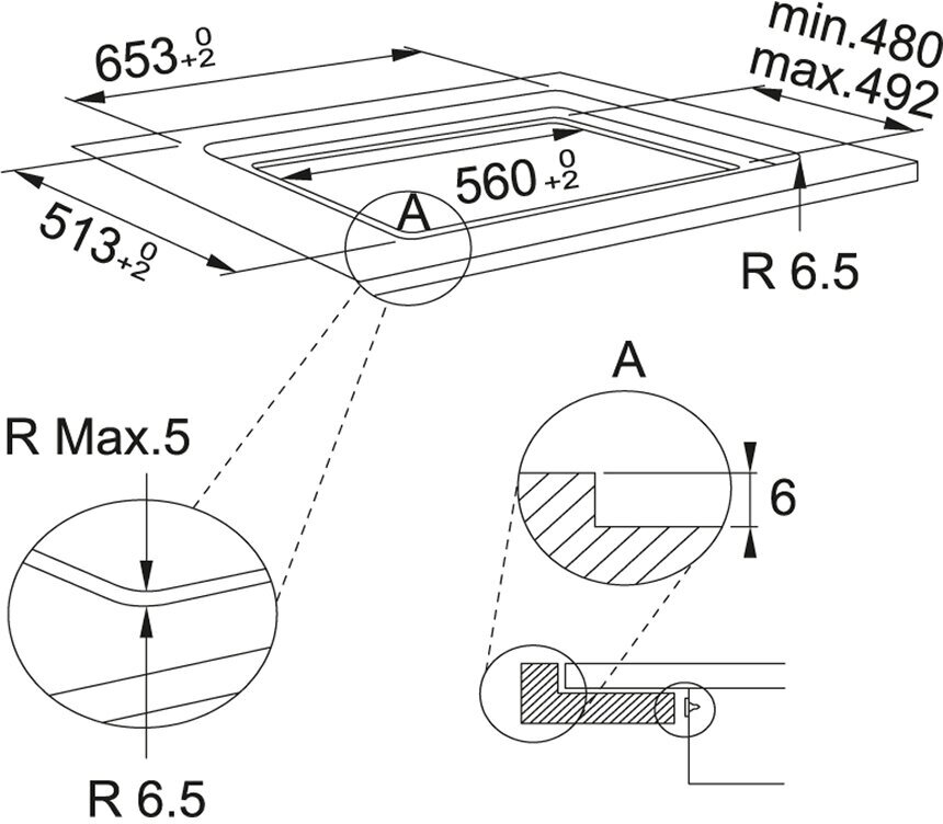 | Размеры для встраивания (ШхГ) | 560x480 мм |