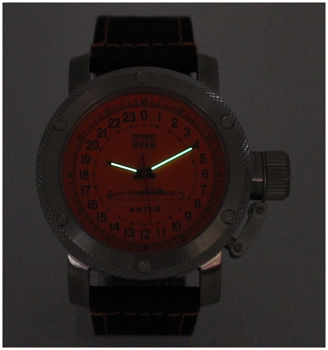 Лучшие цены. Watch Triumph с 2000 года ограниченными партиями собирает часы для мужчин экстремальных профессий: военных, моряков, лётчиков, полярников. Модель 949А / Антей (по классификации НАТО Oscar-II) входит в серию часов, посвящённых подводным лодкам СССР, России. Проект 949А "Антей" - серия советских торпедных атомных подводных лодок 3-го поколения. Лодки с узкой специализацией - "убийцы авианосцев". - У часов корпус из нержавеющей стали, диаметр 47 мм, толщина 15 мм. Магазины в вашем городе.