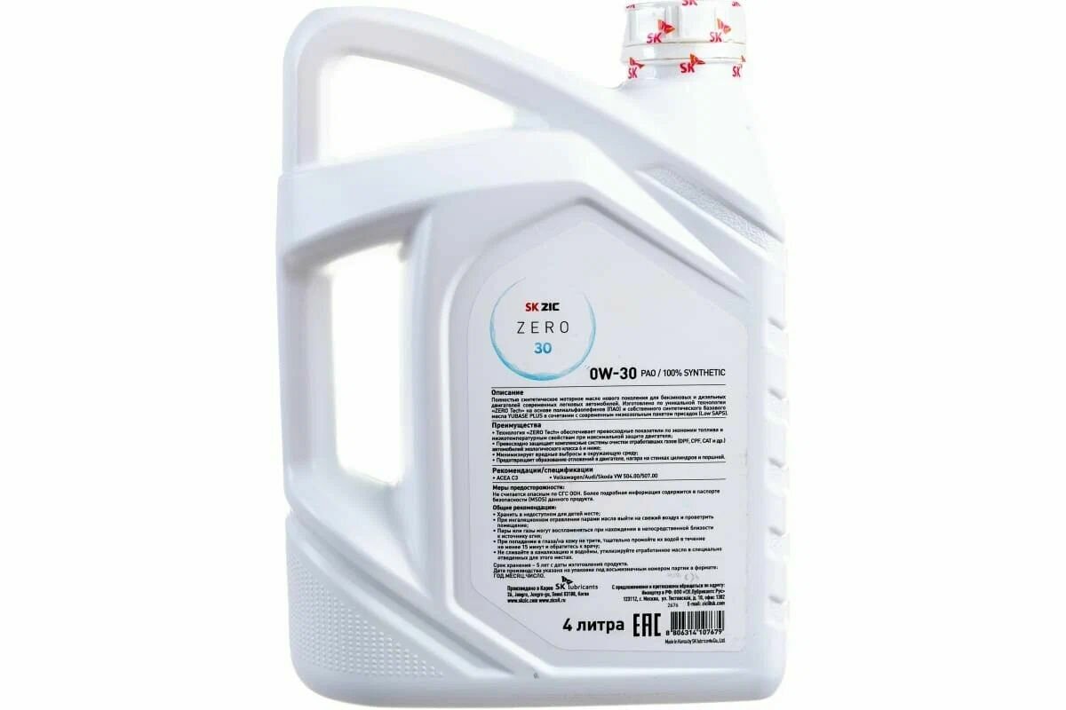 SK Lubricants (ZIC) Моторное масло ZIC ZERO 0w30 SN 4 л