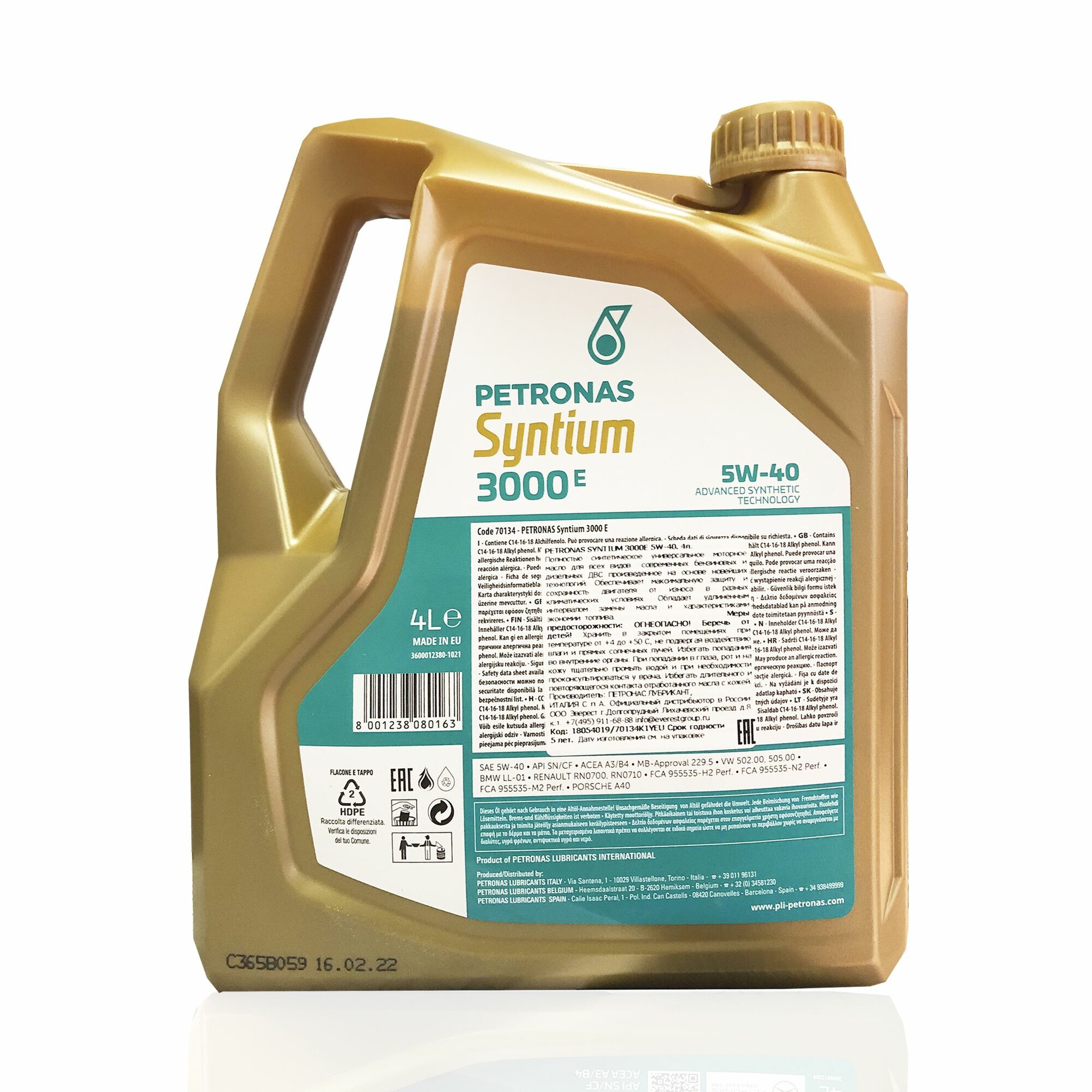 Моторное масло PETRONAS SYNTIUM 3000 E 5W40 60 литров 70134K1YEU Синтетическое API SN, CF ACEA A3 B4 MB 229.5 BMW Longlife-01 VW 502.00, 505.00 Porsche A40 Renault RN0700 RN0710