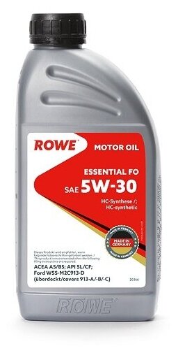 Лучшие цены. Моторные масла ROWE ESSENTIAL SAE 5W-30 FO разработанные для моделей Ford, которым требуется масло в соответствии с WSS-M2C 913-C или 913-D. ACEA A5/B5 API SL/CF Ford WSS-M2C913-D (überdeckt/covers 913-A/-B/-C). Магазины в вашем городе.