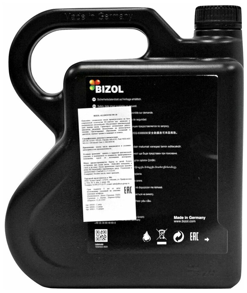 BIZOL BIZOL 85836 BIZOL НС-синт. мот.масло Allround 0W-20 SP GF-6A (4л) BIZOL 85836