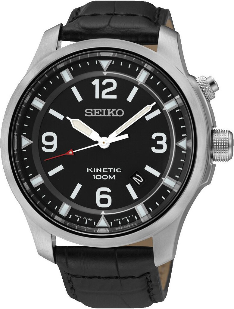 Лучшие цены. Пол: мужские. Тип часов: классика. Механизм: автокварц (кинетик). Форма корпуса: круглые. Материал корпуса: нержавеющая сталь. Цвет корпуса: стальной/серый. Водозащита: 100м (10 АТМ). Стекло: минеральное. Циферблат: со стрелками. Цвет циферблата: черные и темно-серые тона. Цифры/метки: арабские цифры; штрихи. Календарь: дата. Подсветка: люминесцентное покрытие стрелок/меток. Браслет/ремешок: кожаный ремешок. Цвет браслета/ремешка: черный. Свойства/Функции: система EOL (индикация окончания заряда батарейки). Магазины в вашем городе.