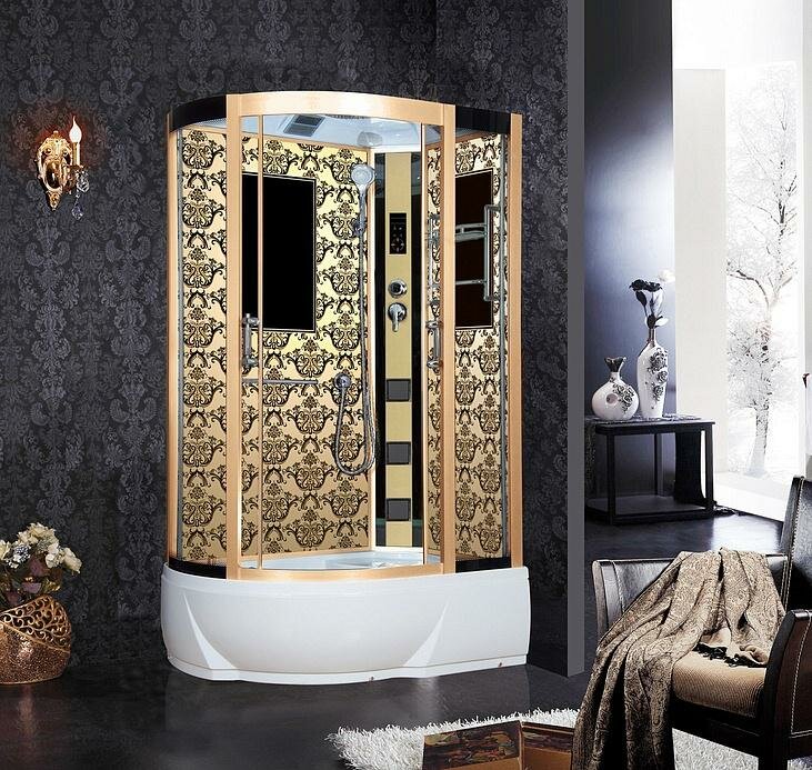 Душевая кабина NG-7712GR (800x1200х2150) высокий поддон стенки золото